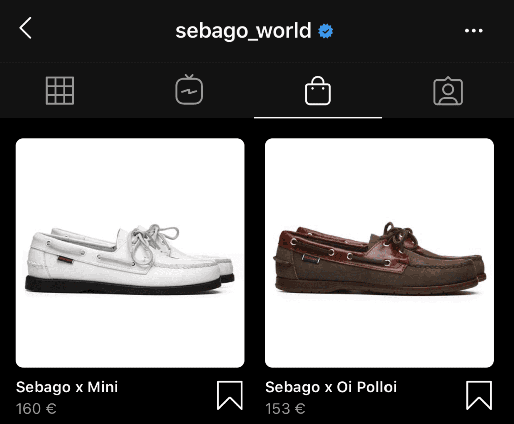 Sebago también utiliza su perfil de Instagram, para vender productos directamente dentro de la plataforma.